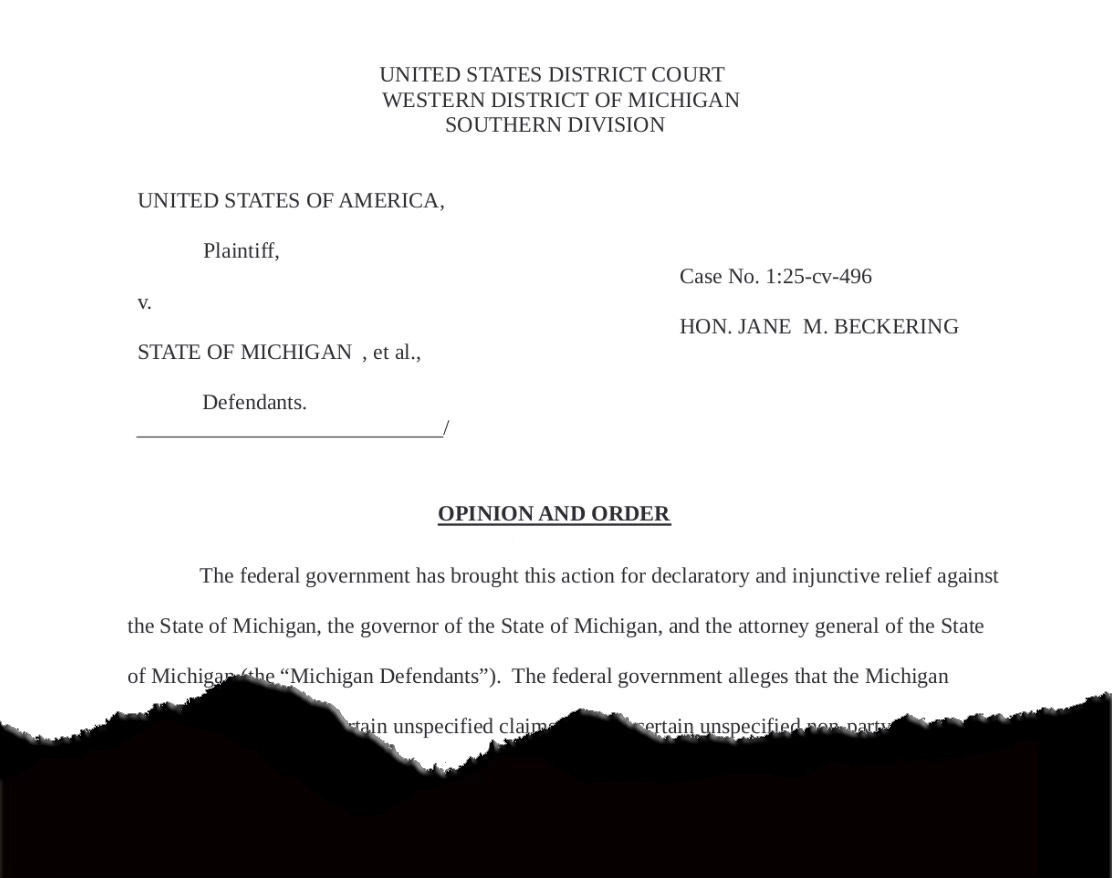 “The threat that at some point Michigan might bring a lawsuit that would somehow adversely affect oil company finances, which in turn would have some conceivable impact on U.S. policy, was nowhere even close to meeting those requirements,” he added.